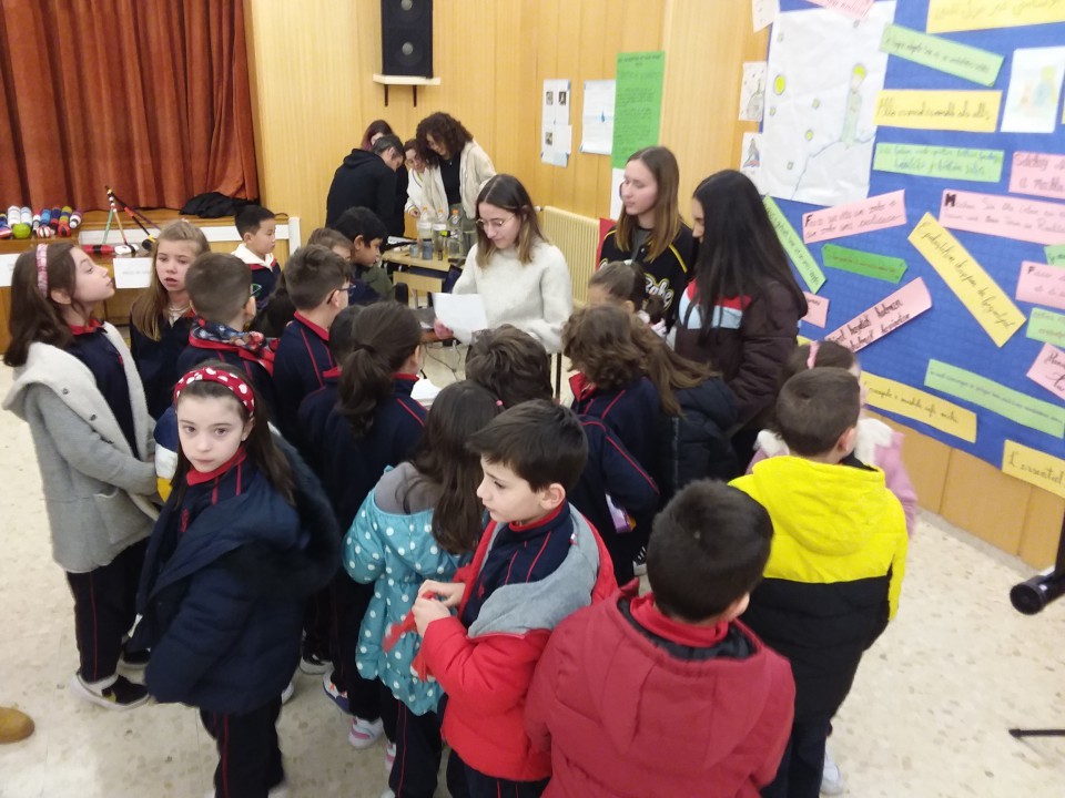 Educación Secundaria expuso varias demostraciones de Física y Química sobre los ensayos a la llama, y como gracias a ellos se descubrieron los fuegos artificiales de colores,, “Qué sería de las verbenas con la Panorama y la París de Noia sin Kirchhoff (descubridor de este fenómeno); Cómo funcionan los indicadores de pH, o cuando las matemáticas se ponen agresivas lo que le permitió al matemático Gauss inventar el fusil de Gaus con electroimanes y bolas de acero…