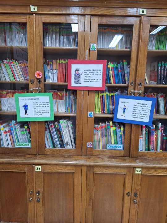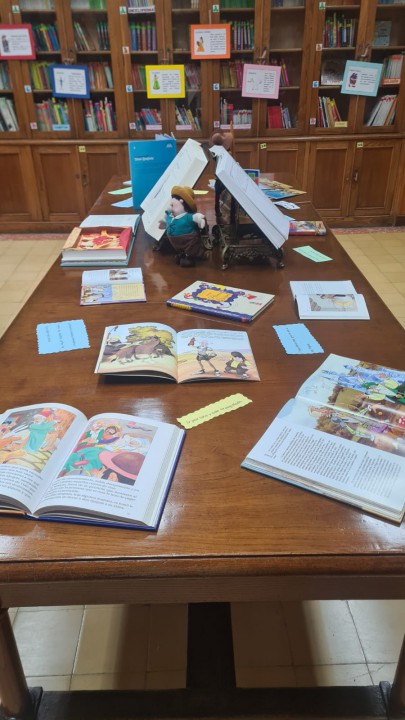 Este año en el día del libro y gracias a nuestra biblioteca “Los leones” hemos podido disfrutar de una exposición dedicada a “EL Quijote”.