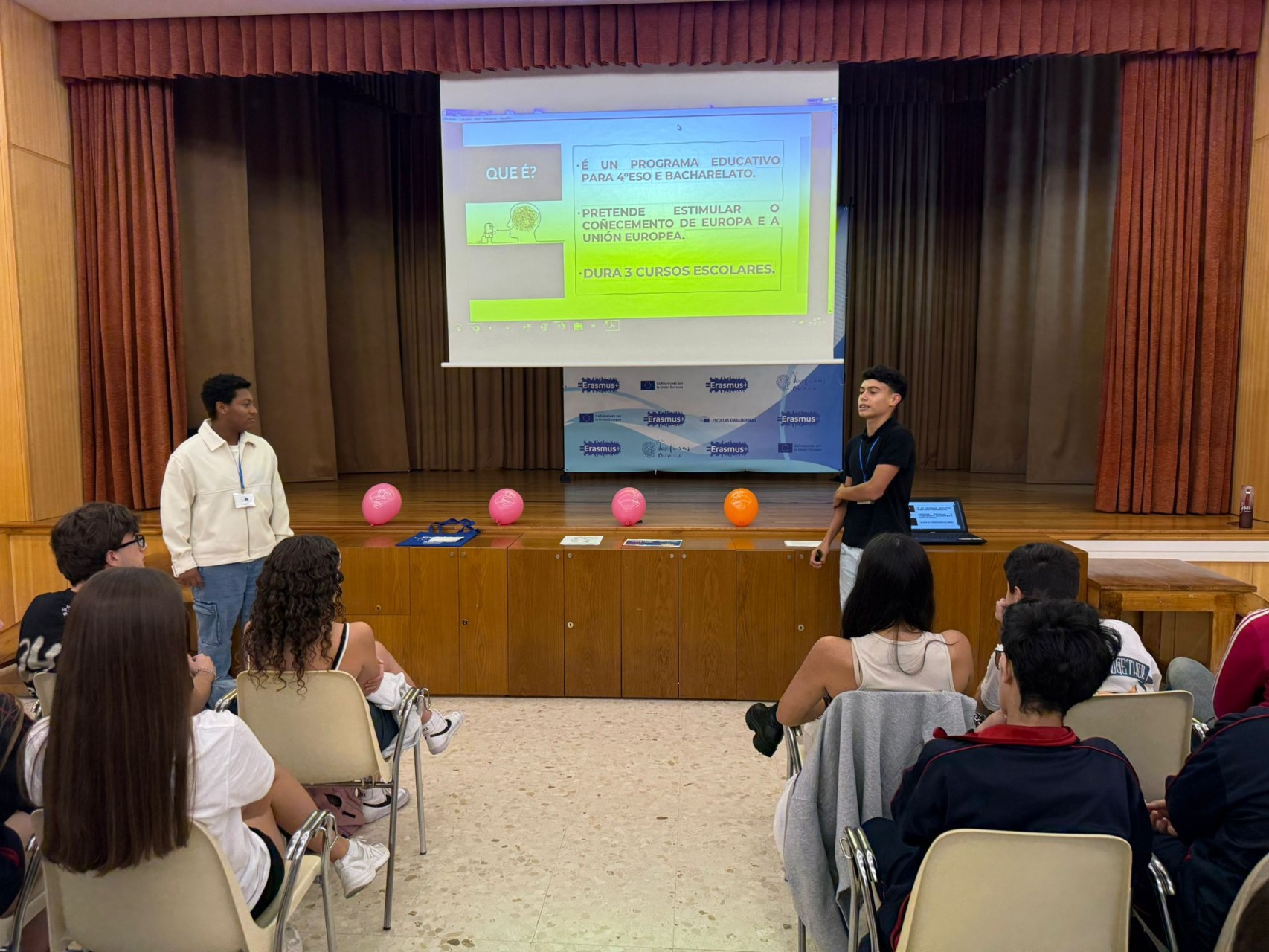 -presentación proyecto Erasmus KA210-movilidad a Turquía a cargo de los ex-alumnos Ainoa, Jorge y Sarai.