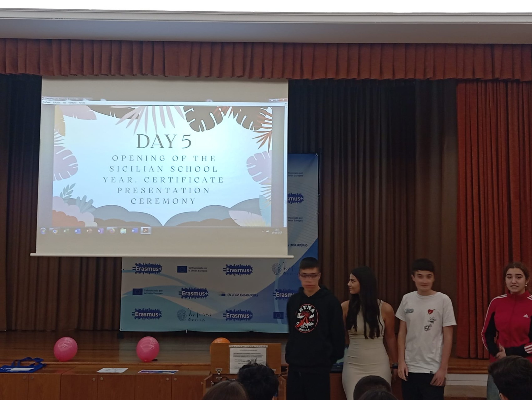 - presentación proyecto Erasmus KA210-movilidad a Sicilia a cargo de Martín, Sofía, Pablo y África.